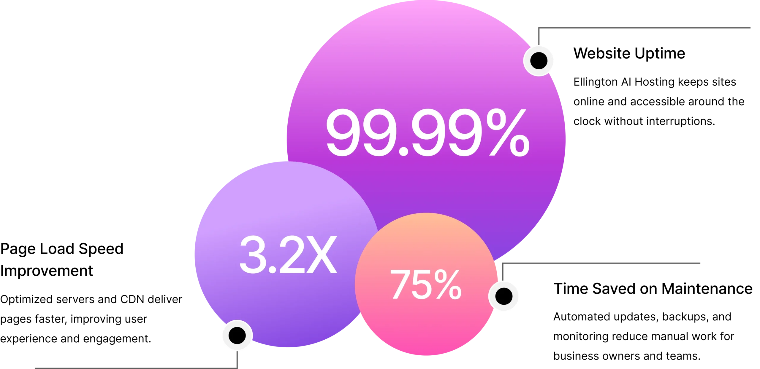 Ellington’s AI Hosting ensures your website runs at peak performance, 24/7, optimized for speed, security, and AI automation.