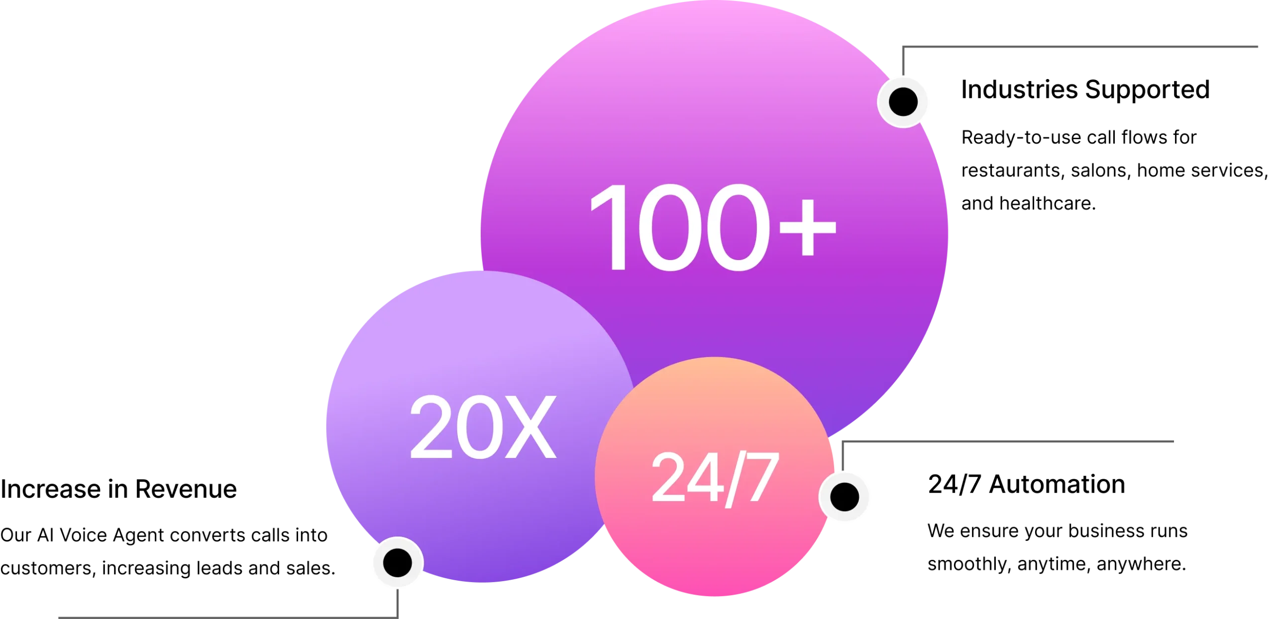 Our AI Voice Agents give your customers instant attention with reliable, conversational support that handles everything from simple questions to complex service needs.